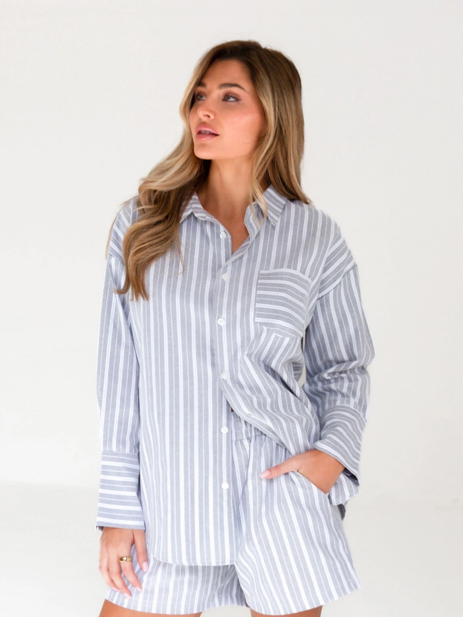 Welcome the warmer weather with our Days of Summer collection, and get ready for those sunny days ahead with our Elena Stripe Shirt.Â