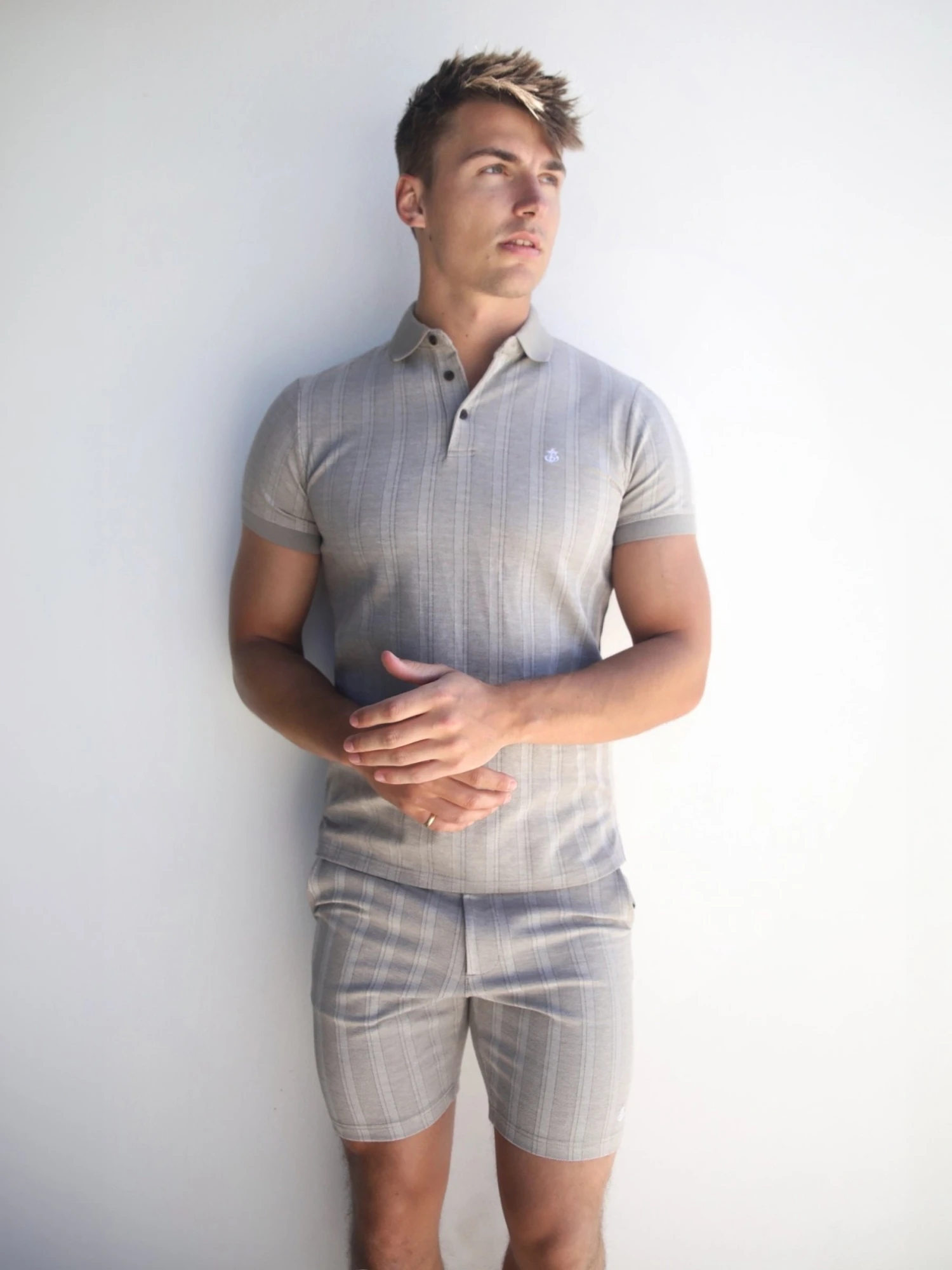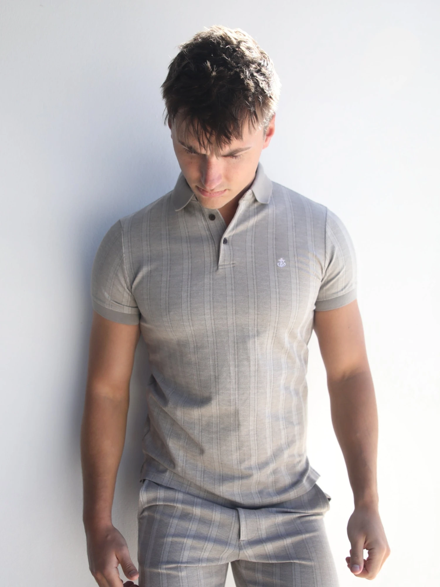 The Ernesto Polo in tan has a slim fit, with a stripe pattern and short sleeves. It has a summary up polo collar, and is finished with an embroidered Anchor logo in white to the chest and branded tab to the side seam line. Pair with the matching shorts for a complete look.