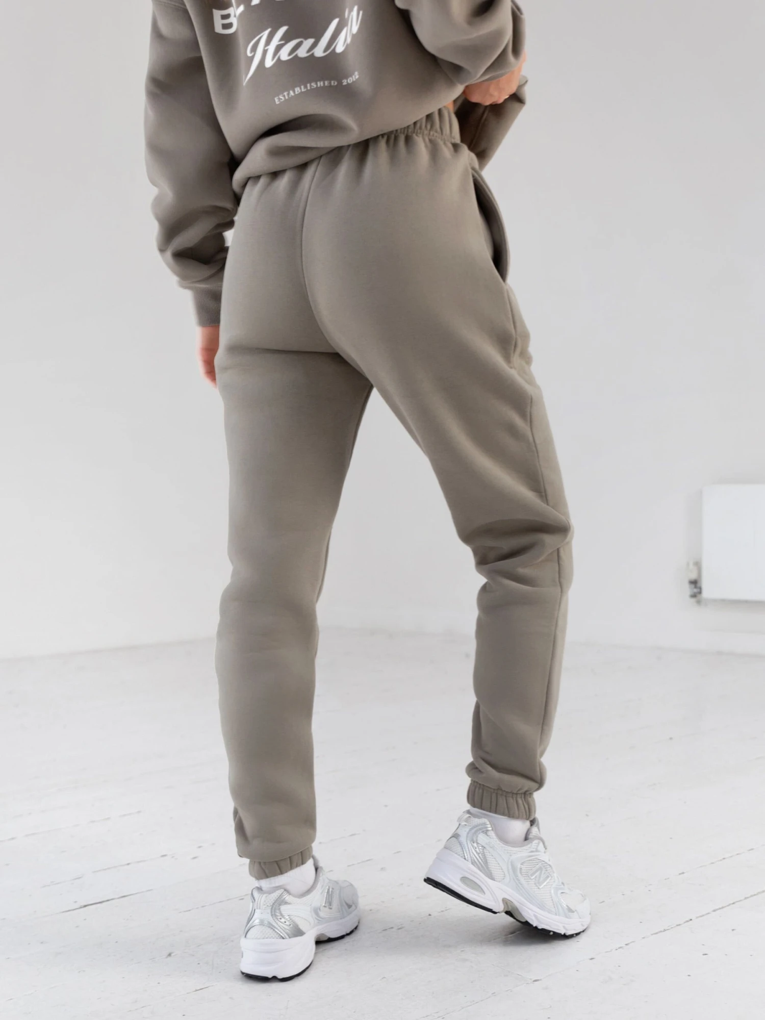 Our stone grey Italia Sweatpants feature a subtly oversized fit and are made from a soft cotton blend. They have an elasticated waistband and a side pocket on each leg. The left leg has been finished with our Italia screen-printed logo.