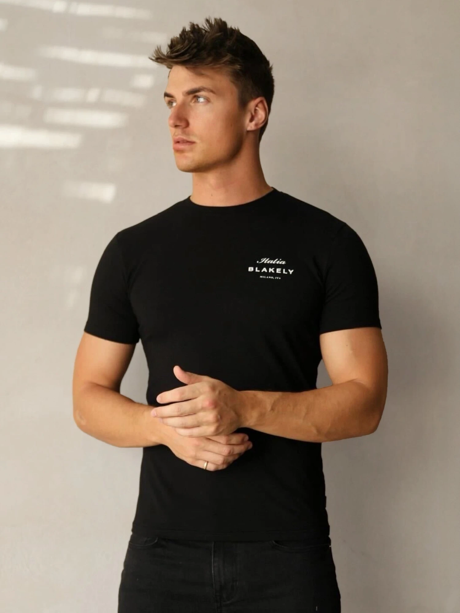 Part of this collection is our Italia T-shirt in black, it has been crafted from a soft cotton blend with a slim fit. The t-shirt has a crew neck design and features our screen printed Italia graphic to the chest.