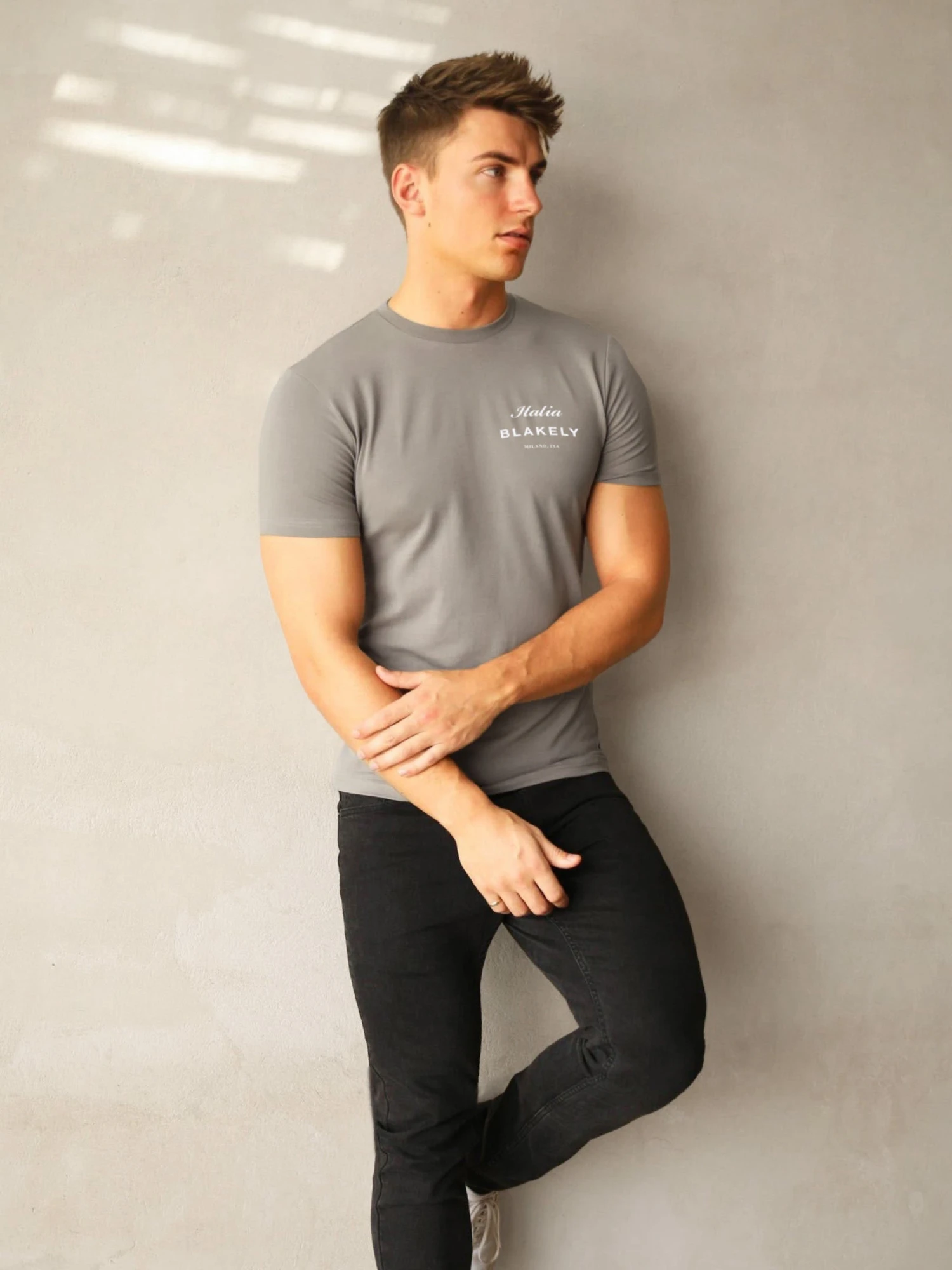 Part of this collection is our Italia T-shirt in stone grey, it has been crafted from a soft cotton blend with a slim fit. The t-shirt has a crew neck design and features our screen printed Italia graphic to the chest.