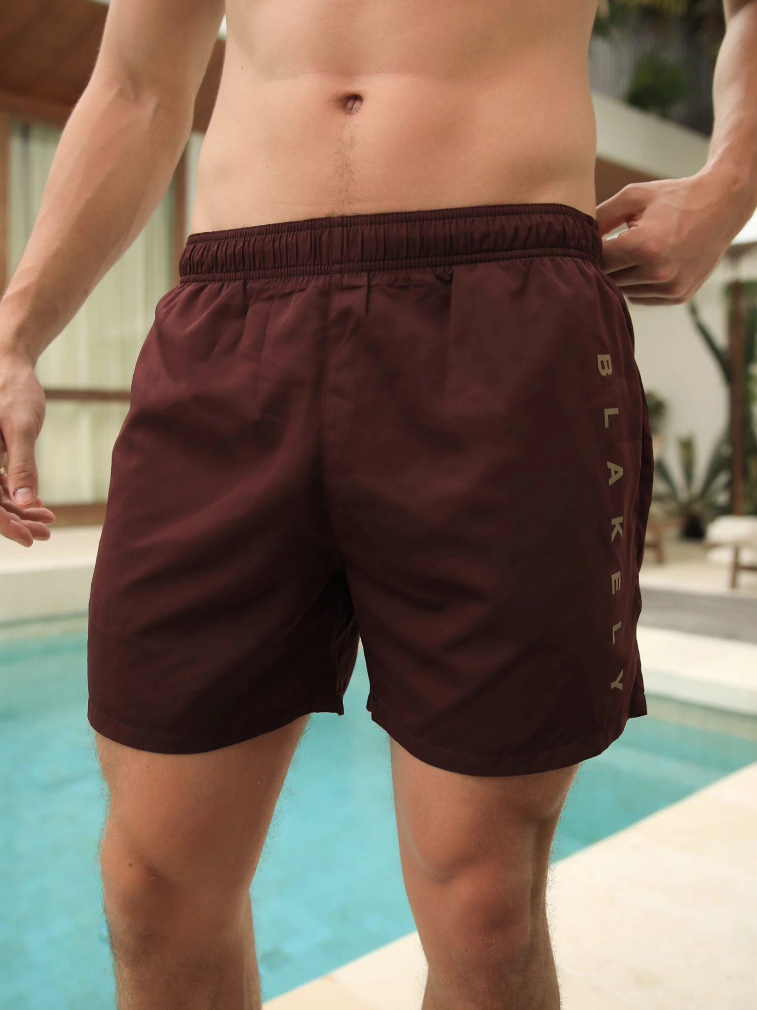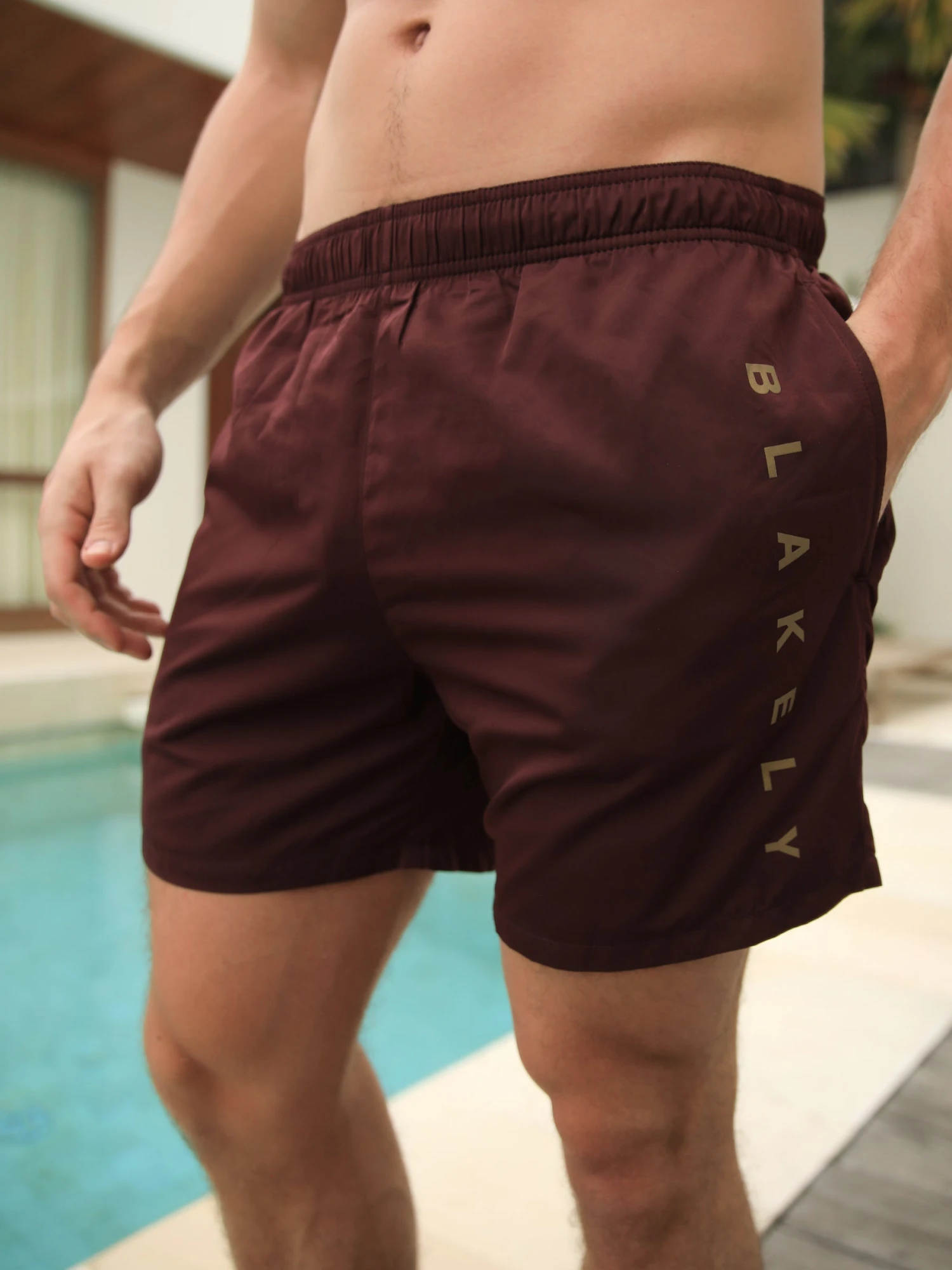 Our Lugano Swim Short features a stylish burgundy colour and gold branding for a modern, fashionable look. A drawstring and elasticated waist ensures a comfortable, secure fit while its innovative new swim short shape provides a great look.