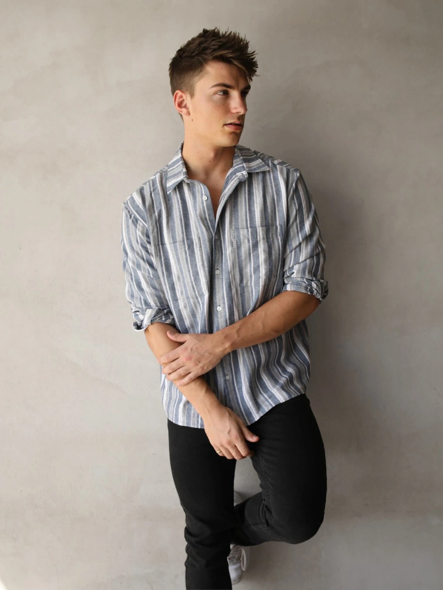 The Rialto Stripe Shirt in blue has a lightweight fabrication and a long-sleeve design. It has been finished with a relaxed fit and striped pattern.