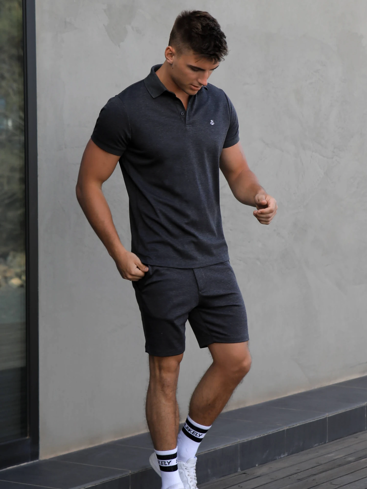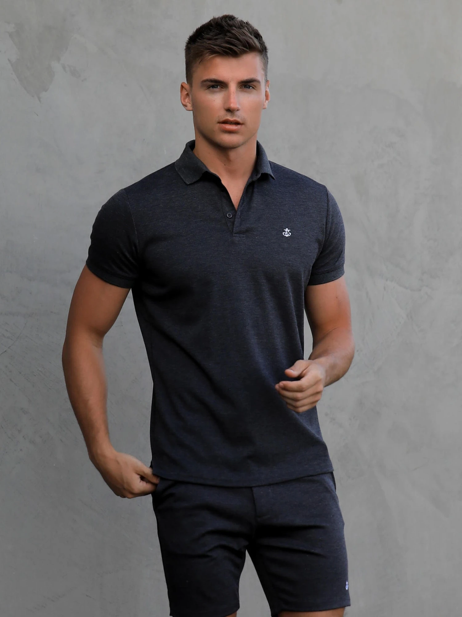 Our Sorrento Polo in Charcoal is a slim fit shirt made from a soft fabric blend. It features a summary-up open polo collar and is finished with an embroidered Anchor logo on the chest. Pair with the matching shorts for a complete look.