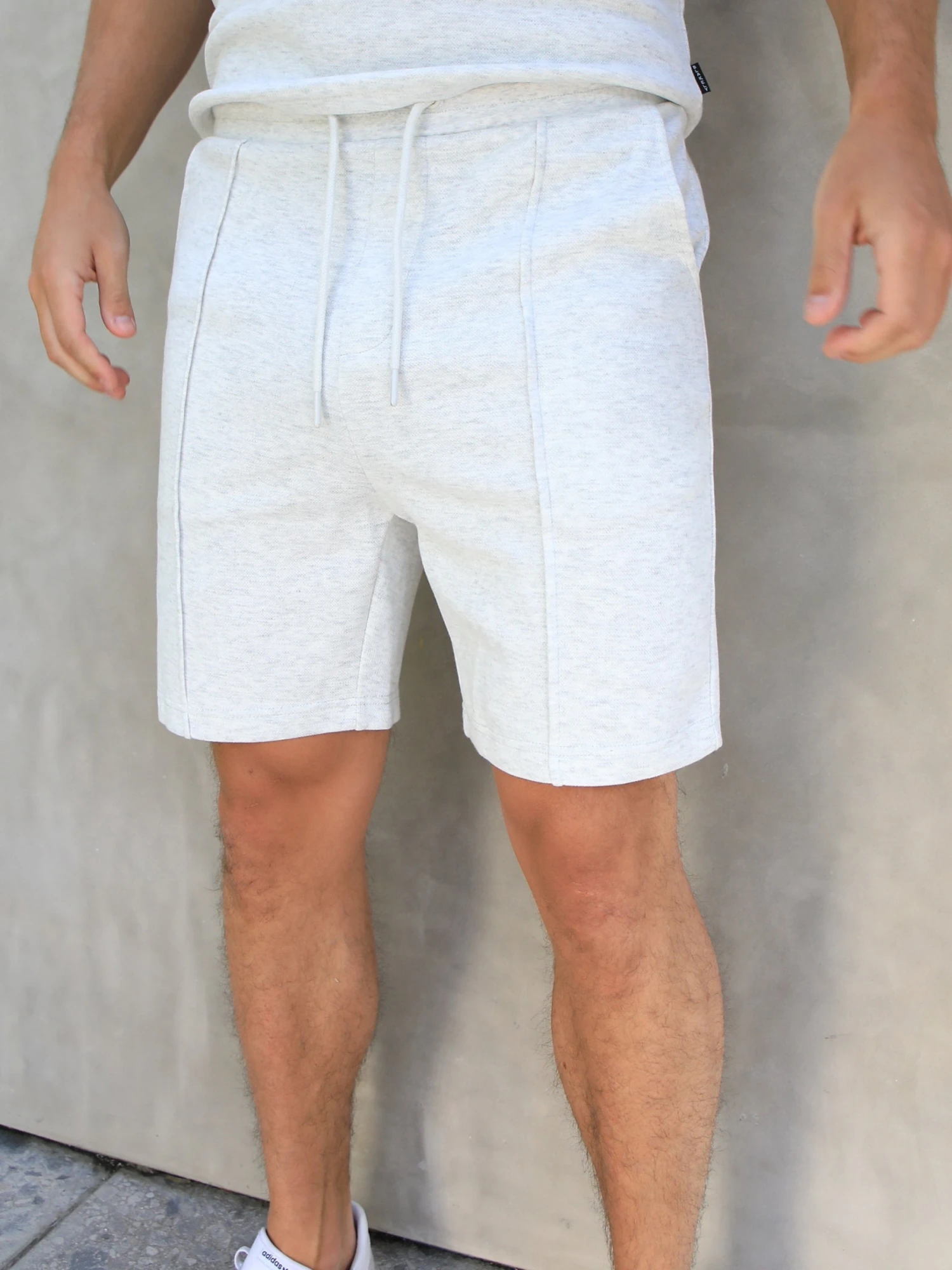 The Verona Shorts in marl white are made from a super soft cotton blend and have a slightly relaxed fit. These shorts have been finished with seam detailing, side pockets, and an elastic waistband.